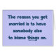 The reason you get married is to have somebody else to blame things on. Words of wisdom from The Grumpy Old Man. Grumpy old man humour for the grumpy husband.