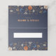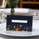 There is a white panel on the front of the card for handwritten guest names. A beautiful floral design in dark blue and rust with a modern font on the back. Bohemian rustic country. Bohemian Navy Blue Terracotta Wedding Place Card.