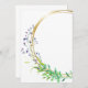 This is a blank wedding invitation for you to customise; it features a floral spray, leaves and golden circular sweep