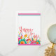 Whimsical art. Bright cheerful "Happy Day" note card, thank you note. Room on both back and front for note. Pink, aqua, sunny yellow modern floral.