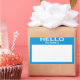 This customisable product features a blank "Hello My Name Is ..." name tag sticker.