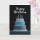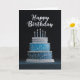 BLANK INSIDE: Blue & Silver Birthday Cake Design Card