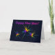 I like the black background, which is different, but shows off the fireworks more that look like birds of paradise. Just gives the cards a look unlike the run of the mill new year cards. Beautiful and I am pround to send them out. Quality printing, vivid colors and the right weight paper and size!