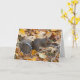 A blank greeting card featuring a photograph of a gray squirrel munching on a seed he found among the fallen leaves in Autumn.
