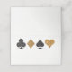Perfect for a glamourous and glitzy Las Vegas casino wedding, this white folded place card features faux gold glitter with black card suits with a blank white space to write in your guests names. Does your caterer need to know each guest's meal choice? Edit this design to add a coloured backer unique to each meal type or use a sticker to denote who gets what type of meal. These cards are sold in packs of 25 so don't forget to order enough for each place setting!