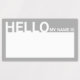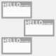 featuring title "Hello" in white bold sans serif font with white blank space for your name on grey background.