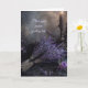A moody, elegant blank greeting card featuring a dark lavender floral design with no front text.