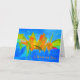Blank note card with colourful abstract design in blues, orange, green, yellow. Original image was a photograph of swamp grasses.