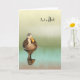 Blank note card with a Mottled Duck on a digitally designed pond background. It was designed to look like a foggy pond with pastel greens.