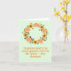 Bring a touch of whimsy to your greetings with this charming floral wreath design. The vibrant orange flowers and playful arrangement make this blank card a perfect choice for sending cheerful messages. Add your own words and make someone's day brighter with this delightful wreath card.