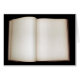 Open book with blank pages photo card. Very old book with yellowing of pages