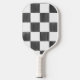 This pretty pickleball paddle is ready to be personalized with a name in black script style lettering. The paddle has a pattern of painted black squares and plain white squares arranged in a checkerboard pattern. The pattern appears on both sides with the name on one side of the paddle.