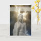 The design is a statue of the Blessed Mary, with a stormy background and rays of light both around her head, and her right hand. The sympathy card was designed with no words, so that you can add your own to both the front and the back. Thanks to Design Cuts for the background.