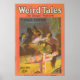 The poster showcases the iconic cover art of "Weird Tales" magazine, a pulpy publication that popularised speculative fiction and horror genres in the early 20th century. The cover features a group of influential writers including H.P. Lovecraft, Robert E. Howard, Robert Bloch, Ashton Clark Smith, and other literary luminaries who contributed to the magazine. The cover art itself is a masterpiece of lurid imagery and striking colours, featuring otherworldly creatures, supernatural landscapes, and bizarre happenings. The stories featured in the magazine are renowned for their Gothic sensibilities, eerie atmosphere, and imaginative concepts that have inspired generations of writers and artists. The poster is a tribute to the enduring legacy of "Weird Tales" and its pioneering role in shaping the modern horror and fantasy genres. It is a must-have for fans of pulp fiction, horror literature, and classic sci-fi, and a testament to the enduring power of storytelling to transport us to strange and wondrous realms beyond our wildest imaginings.