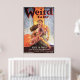 The poster showcases the iconic cover art of "Weird Tales" magazine, a pulpy publication that popularised speculative fiction and horror genres in the early 20th century. The cover features a group of influential writers including H.P. Lovecraft, Robert E. Howard, Robert Bloch, Ashton Clark Smith, and other literary luminaries who contributed to the magazine. The cover art itself is a masterpiece of lurid imagery and striking colours, featuring otherworldly creatures, supernatural landscapes, and bizarre happenings. The stories featured in the magazine are renowned for their Gothic sensibilities, eerie atmosphere, and imaginative concepts that have inspired generations of writers and artists. The poster is a tribute to the enduring legacy of "Weird Tales" and its pioneering role in shaping the modern horror and fantasy genres. It is a must-have for fans of pulp fiction, horror literature, and classic sci-fi, and a testament to the enduring power of storytelling to transport us to strange and wondrous realms beyond our wildest imaginings.