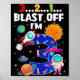 Blast Off I'm 3 Years Old 3rd Birthday Spaceship A Poster