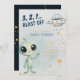 Adorable alien and spaceship graphics make these blast off third birthday invites cute and fun!