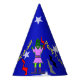 Cute green space robot girl alien cartoon character Captain Zoey. Blast-off some one-of-a-kind Birthday Party Fun with this smiling green girl robot with pink and green outfit, purple flowered space boots and the look of 3D colourful lights as accessories on belt, wrist bands and collar. Party hats have a blue background with stars and colourful lightning lightning bolts. Fun alien birthday party hats for any child boy or girl who loves robots, spaceships, aliens and exploring the galaxy. Original Graphic Artwork design cannot be altered or reproduced Copyright © 2014 , 2016 TamiraZDesigns. All Rights Reserved. Visit my store for more original items: www.zazzle.com/tamirazdesigns*