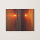 Put your puzzle making skills to the test with this shot of a blazing orange beach sunset reflecting in the waters of a romantic evening. 8 x 10 - inch jigsaw puzzle with 110 pieces.