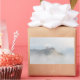 Rectangular photo sticker of historic Bled castle, built upon the rocks along Lake Bled, surrounded by clouds and ground fog, like it is a castle built in the sky, in Bled, Slovenia.