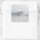 Photo sticker with historic Bled castle, built upon the rocks along Lake Bled, surrounded by clouds and ground fog, like it is a castle built in the sky, in Bled, Slovenia.