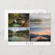Postcard showing landscapes with churches in the area of the famous Lake Bled and Lake Bohinj and Vintgar Gorge canyon with a white border and the text: 'Bled'.