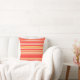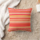 Throw pillow in blended stripes in shades of pastel to deep coral orange, accented with coral red and soft golden yellow