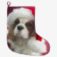 This is a Christmas Stocking featuring an original photograph of a handsome, Blenheim Cavalier King Charles Spaniel wearing his Santa hat.