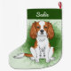 Blenheim Cavalier King Charles Spaniel On Green Large Christmas Stocking