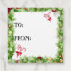 This is a beautiful Christmas gift tag featuring an original photo of a handsome, Blenheim Cavalier King Charles Spaniel, wearing his Santa hat, tilting his head inquisitively, and surrounded by snowflakes and Evergreen, with the text to/from on the reverse.