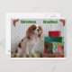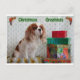 A Blenheim Cavalier King Charles Spaniel in a Christmas setting.