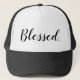 Make a statement while wearing this trucker hat. This design features the word "Blessed." in a modern black script. You may personalise or leave as is. The perfect gift for your Christian family and friends.