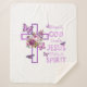 Blessed by God Saved by Jesus Purple Floral Cross Sherpa Blanket