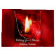 The reflected flame of a single red candle glows brightly on the front of this design, covered in a look of textured foil in a deep, deep red. "Wishing You A Blessed Holiday Season" is in a pale gold script font on the picture, front and back. The red candle, its flame and reflected flame and star-filled black and red muzzy background blend into a background of deep red foil.. The inscription, "Wishing You A Blessed Holiday Season" can be edited easily to anything you like. Just hit "Personalise" and get started. Or delete it entirely, if you prefer.