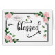 Let your daughter know you are thinking of her and what a blessing she is in your life with this elegant calligraphy typography design. Front of card features the wold, "blessing" in black calligraphy with elegant glyphs and and gift tag with string that includes words, "to my Daughter" with heart accents. Design is accented by pale pink roses and green petals framed with black border.