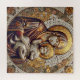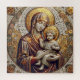 Virgin Mary with Baby Jesus in a tile mosaic style gold, black and white puzzle.
