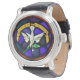This watch is designed with a photo of a stained glass window with a white dove and a banner saying, "Blessed are the Peace Makers".