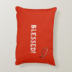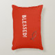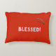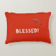 Red, Polyester accent pillow with "Blessed!" quote and illustrated fish image. The red color signifies love. If you are loved, you are blessed. The fish is the secret symbol early Christians used to identify each other and gather without persecution.