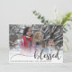 This holiday card features the word "blessed" in script and your custom wording, along with your favorite family photo. Use the template form to add your information. The "Customize Further" feature can be used to access the advanced menus where you can change the font and add text/pictures to the back of the card. Perfect for a family newsletter or special event photos that you want to share.