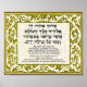 Here is "al netilat yadayim" - meaning "concerning the washing [or raising] of the hands" and is said first thing in the morning, before eating bread, and other specific events. This one has a yellow floral theme, to "hidur l'mitzvah," that is, "beautify the mitzvah."
