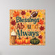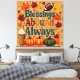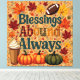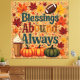 Celebrate the warmth of fall with this cheerful "Blessings Abound Always" design, bursting with cosy seasonal vibes. Surrounded by vivid autumn leaves in shades of crimson, gold, and burnt orange, this playful composition features plaid-patterned typography that radiates rustic charm. The inclusion of pumpkins, a classic football, and a whipped cream-topped fall drink adds a nostalgic and festive touch, perfect for anyone who loves crisp afternoons and pumpkin spice everything. The rich colours and joyful theme make this design ideal for autumn gatherings, Thanksgiving, or simply to embrace the spirit of gratitude. Styled with a modern country flair and playful visual layering, this artwork captures the essence of the fall season in a fun, heartwarming way. AI generated artwork.