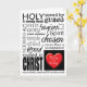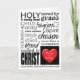 This Birthday card is a beautiful reminder of who we are in Christ. Encouragement written in graphic typography design in black and white. Sentiment in a red heart.