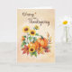 An uplifting Thanksgiving design featuring glowing pumpkins and golden sunflowers, symbolising abundance and gratitude. The words 'Blessings on Thanksgiving' reflect faith and thankfulness, making this a meaningful way to share spiritual warmth and encouragement with loved ones celebrating the holiday season.