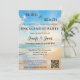 A modern wedding engagement party invitation featuring a watercolor painting of a beach on a beautiful sunny day. An easy to customise QR code template is added for your convenience. On the back is your custom photo.