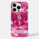 Customize this blingy pink camouflage iPhone 16 pro case with your name in a trendy modern CAP font in dark pink on light pink. It's so blingy, girly and chic! Perfect for any country girl!