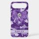 Customize this blingy purple camouflage iPhone 17 air case with a purple satin bow with a diamond center and your name in a trendy modern CAP font in dark purple on light purple. It's so blingy, girly and chic! Perfect for any country girl!