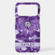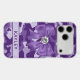 Customize this blingy purple camouflage iPhone 17 pro max case with a purple satin bow with a diamond center and your name in a trendy modern CAP font in dark purple on light purple. It's so blingy, girly and chic! Perfect for any country girl!