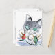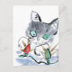 Blinking, Blinking... Grey kitten is very puzzled over the red and green blinking Christmas lights for the holiday tree. Sumi-e, Japanese style ink painting in colour. Artist Ellen Miffitt @ Nine Lives Studio