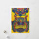 An extremely vibrant multicolored hippo set against brilliant yellow background.