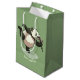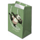 A gift bag featuring a blissful panda, full of the joys of spring, smelling a branch of pink cherry blossom flowers, with editable script beneath ready for you to add your own personal touch for a perfect gift. A spring themed image which works all year round for devoted fans of the cuddly, black and white bear. 'Customise it' to change the green background to your preferred colour. Text changes are reflected front and back.
